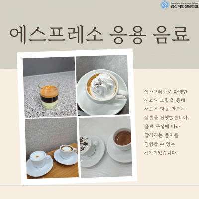 - 강사님께서 적극적으로 상세하게 지도해 주셨고 , 조금이라도 정보를 더 알려주시기 위해 노력해 주시고 열정을 보여주셔서 감사했습니다. 카페 음료에 대한 관심도가 매우 높아졌고 자신 감도 단향되어서 유익한 시간이었습니다 맛있는 카페 음료를 직접 제조해 보고 시음하는 시간들이 흥미로웠고 재미 있었습니다